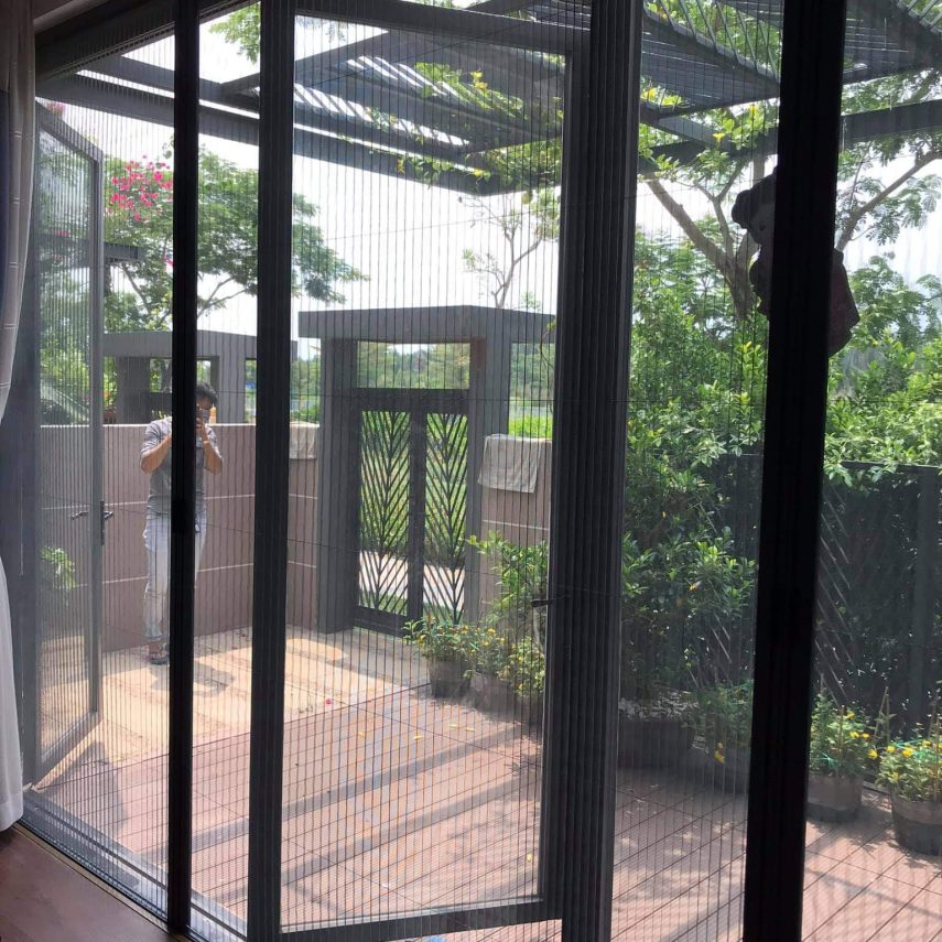 Cửa lưới xếp nan quạt: Giải pháp tối ưu cho cửa đi chính và ban công lớn, có thể xếp gọn vào khung khi không dùng đến.