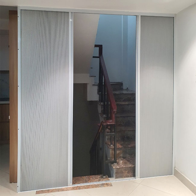 Gọn nhẹ tuyệt đối: Khi xếp lại, rèm chỉ chiếm diện tích khoảng 5-10cm, trả lại không gian thông thoáng hoàn toàn cho lối đi.